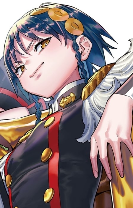 During her previous tenure as Head Commander or when in combat, she wears the standard Anti-Demon uniform that consists of a traditional jacket, a half skirt where one side is short and the other is long, and very long fur-trim epaulettes.